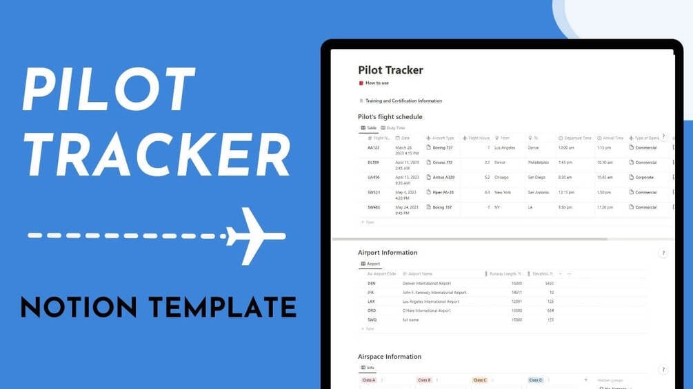 - Flight ExperienceThis information is useful for pilots to keep track of their experience in different types of flight operations, instruments and aircraft, and to ensure that they meet the experience requirements for certain certifications or job positions.